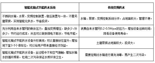 系統將泵組及其節能控制部分與水箱融為一體,可以省去建筑泵房,節約占地面積,縮短施工周期,從而達到節省投資,優化組合之效果。