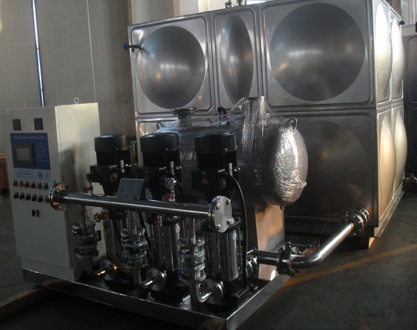 箱式變頻供水設備解決了自來水水壓水流極不穩定地區二次增加供水的問題。采用不銹鋼自動增壓供水設備、過濾消毒裝置、智能控制系統等。設備結構分為:整體式;分體式;具有一體化程度高、安裝方便等優點,設備只需連接進、出水口。設備利用大容積蓄水能力來解決高峰期間和停水期間壓力及水流不足造成的水壓不問流量不足的問題,通過穩壓罐滿足小流量供水穩定性,減少水泵啟動次數,水箱全封閉運行、無污染;泵組選用南方泵運行噪音低、震動小;選用ABB變頻器,性能穩定可靠,保證運行壓力穩定。